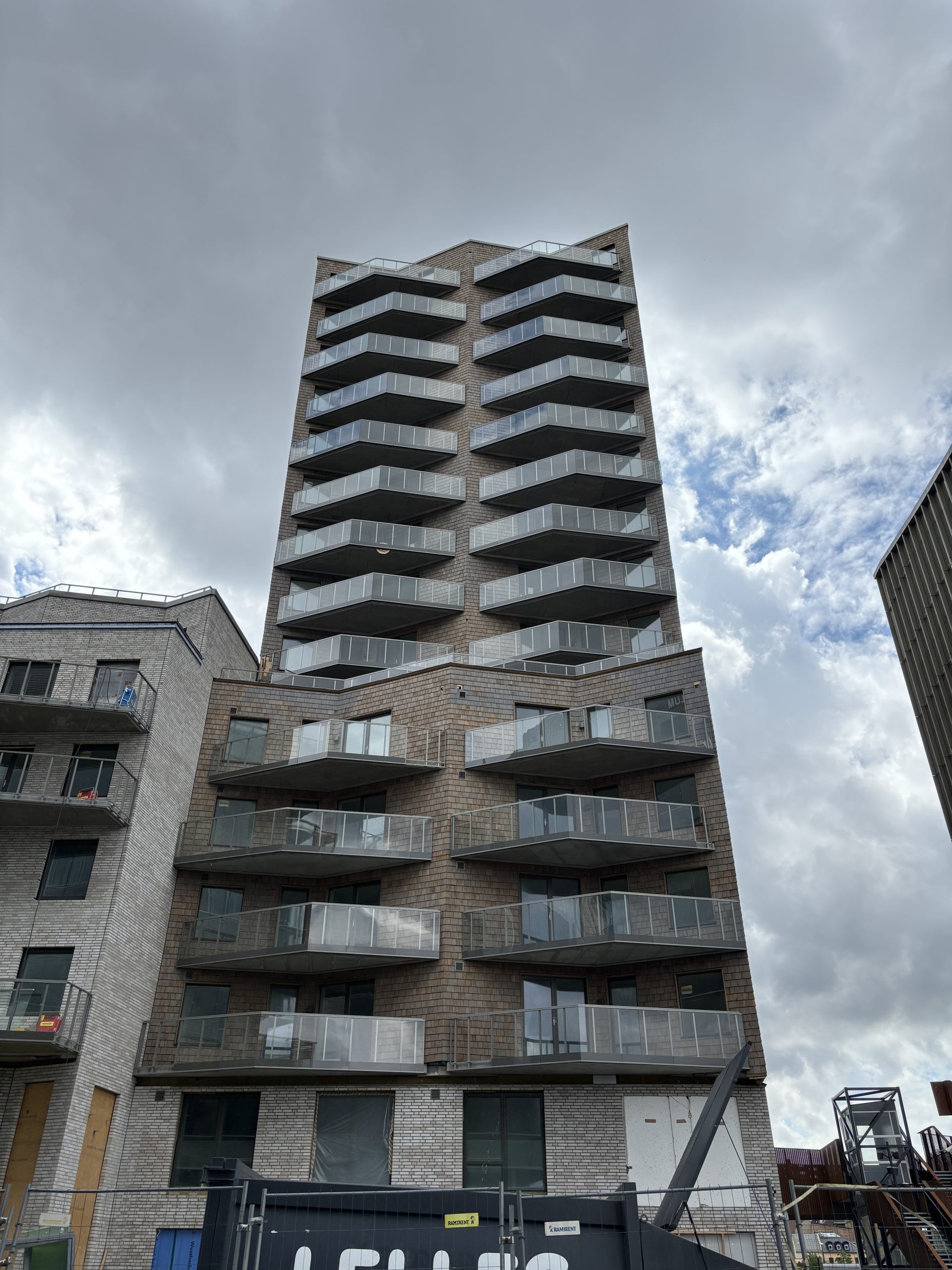 Ca 1400 löpmeter räcke, BT 310 med screentryckta glas.