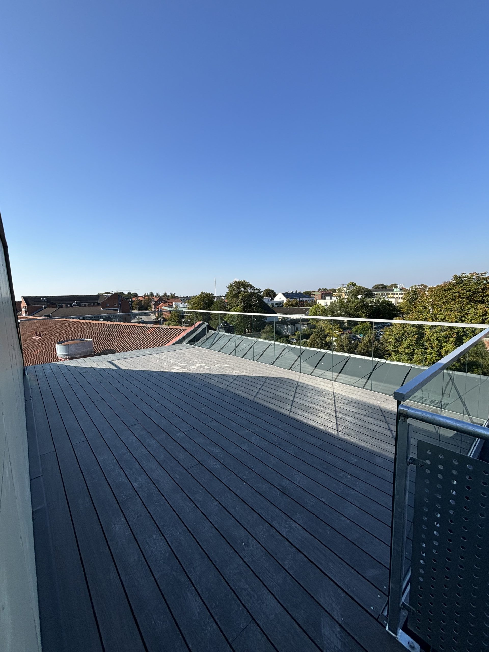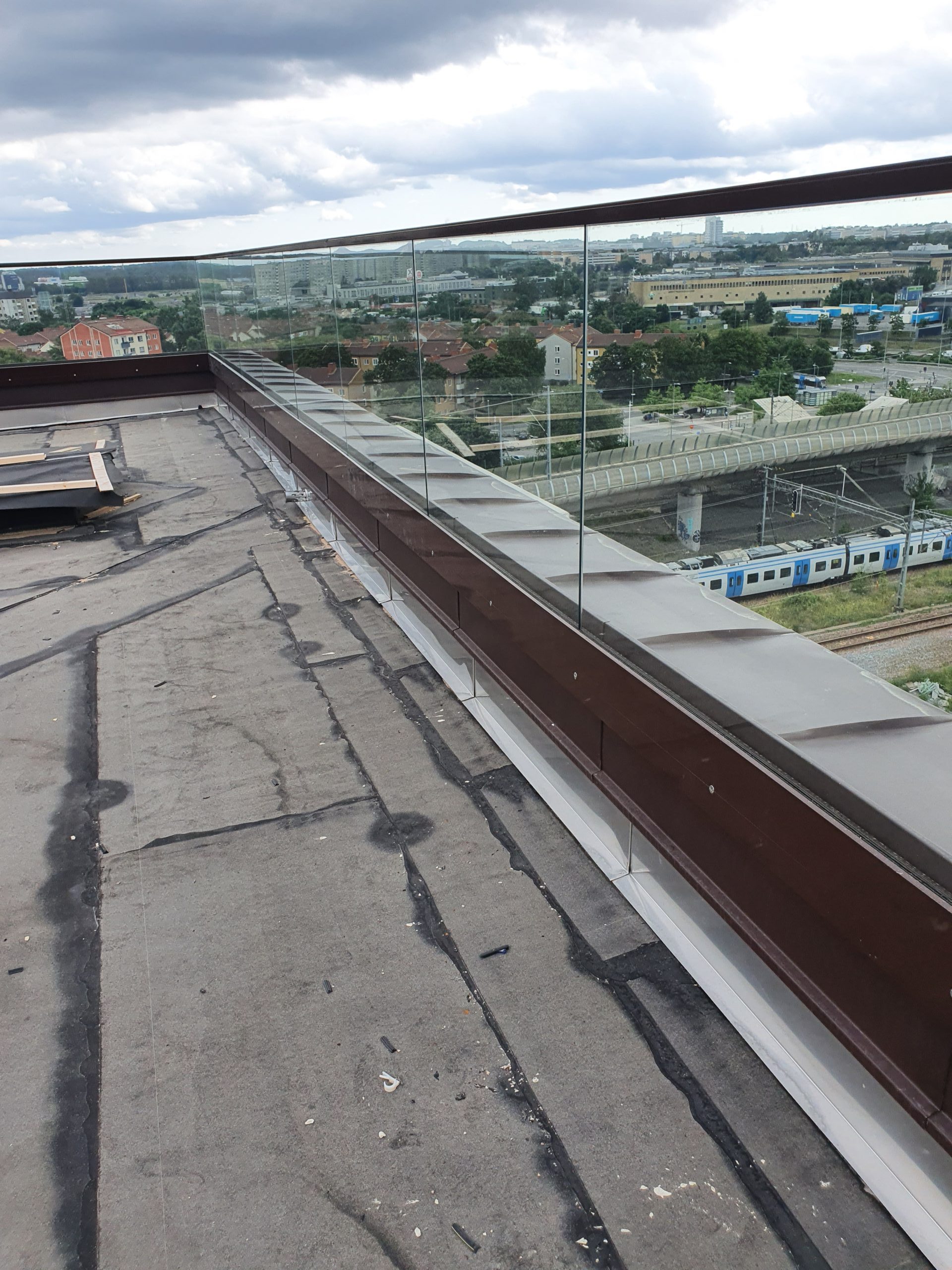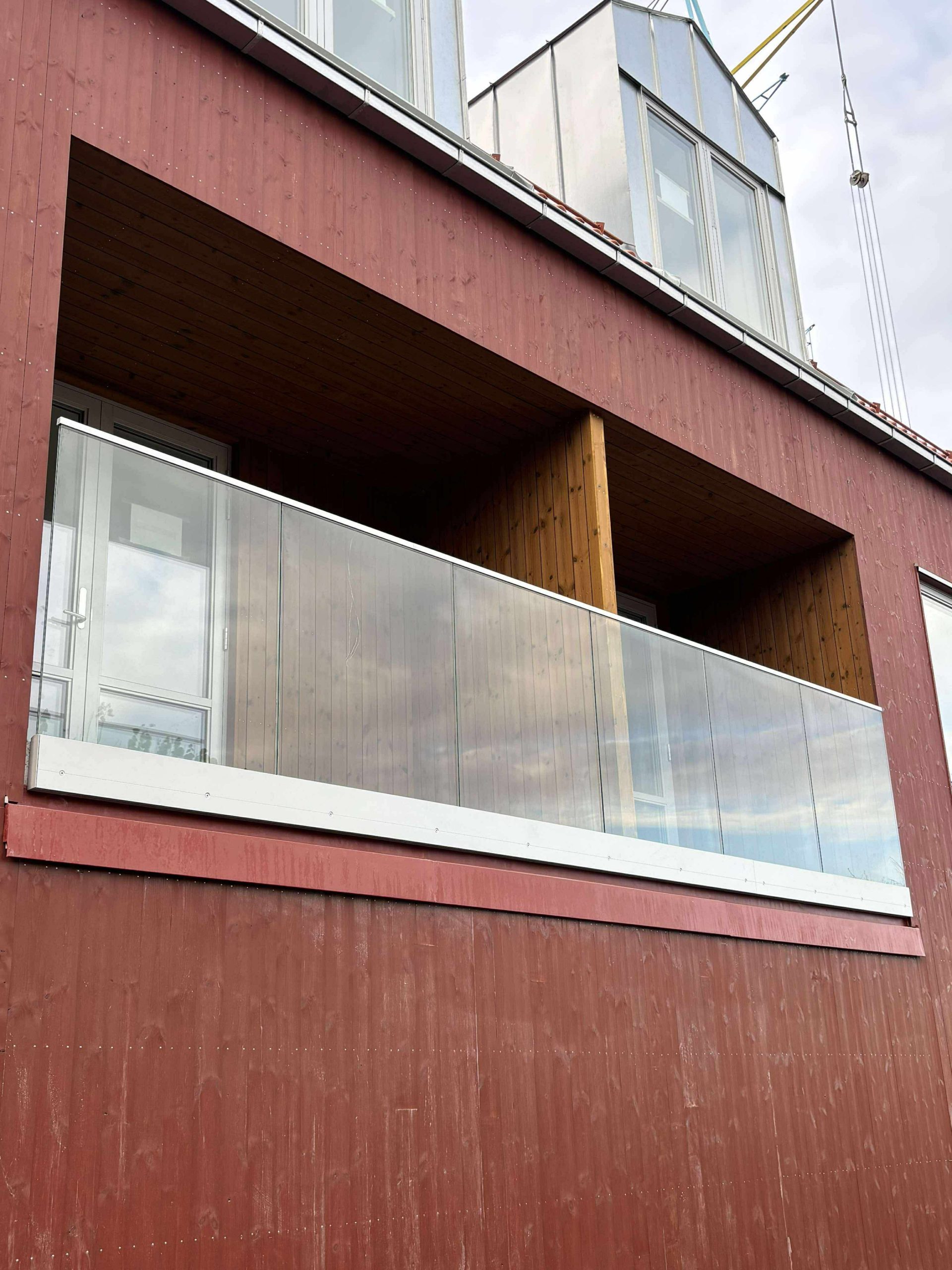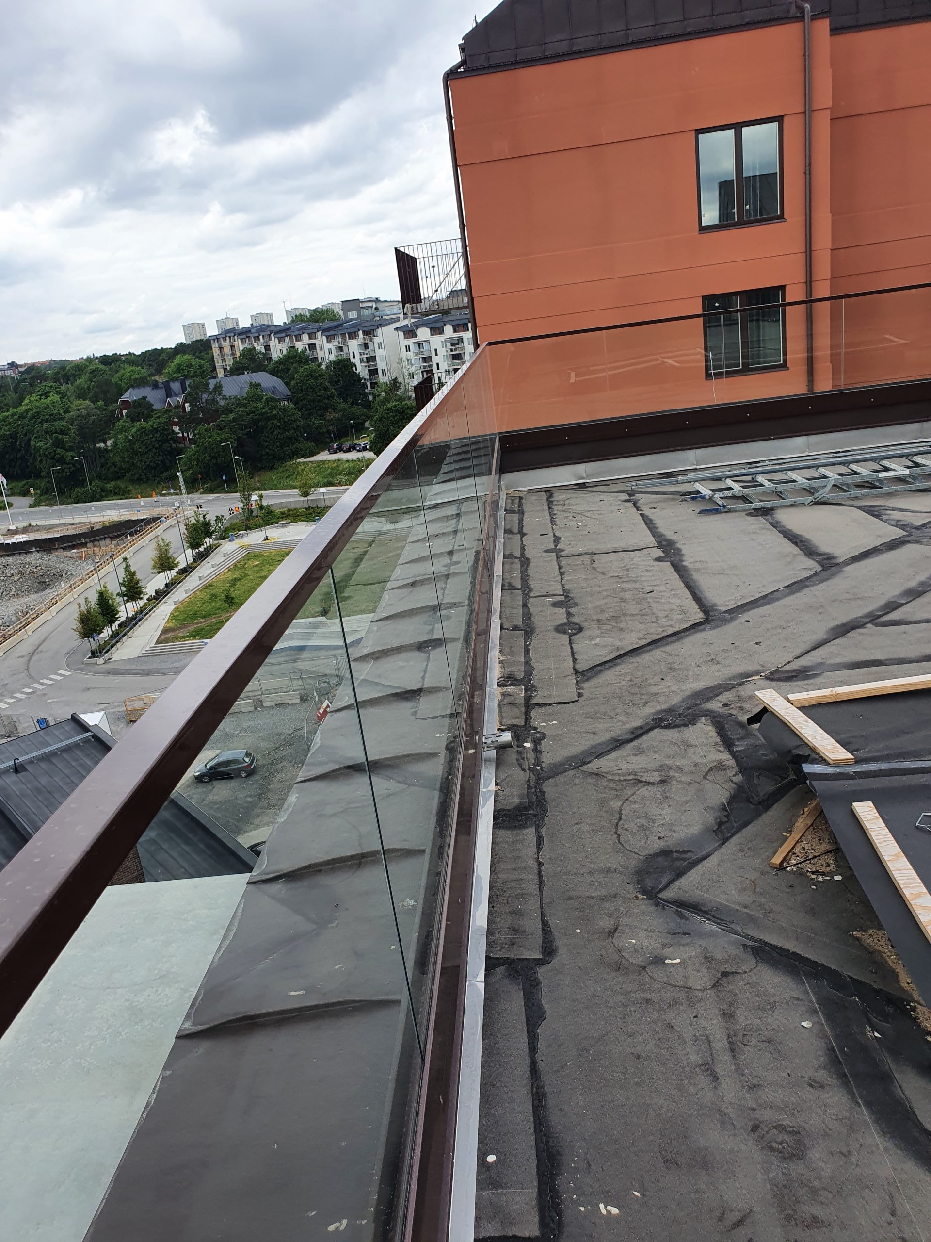 Glaset sitter fast i vår tvådelade profil som monteras i sidokant.